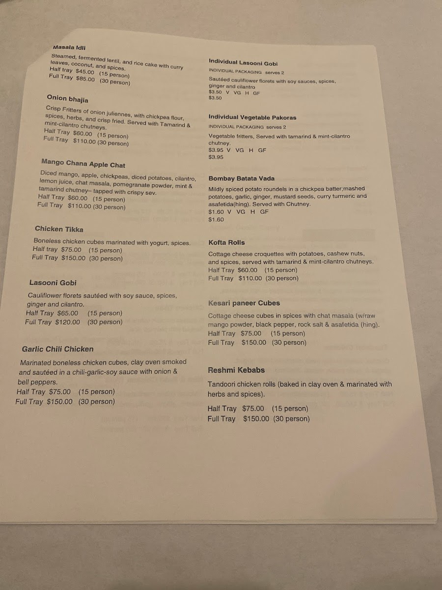 Broiled, diced potatoes and chickpeas, seasoned with tangy chaat masala, fresh lime juice, fresh mint, tamarind, and fresh coriander
